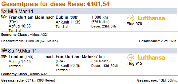 Der große Haken an diesem Angebot sind wie bereits erwähnt die Abflugs- und Ankunftsorte. Ihr benötigt daher natürlich noch entsprechende Zubringerflüge. Wir empfehlen dafür ebenfalls bei Expedia.de Gabelflüge mit Lufthansa zu buchen. Diese sind je nach Termin ab etwa 100 Euro erhältlich und bieten gegenüber den Billigfliegern den Vorteil, dass ihr keine Gepäckgebühren zahlen müsst.