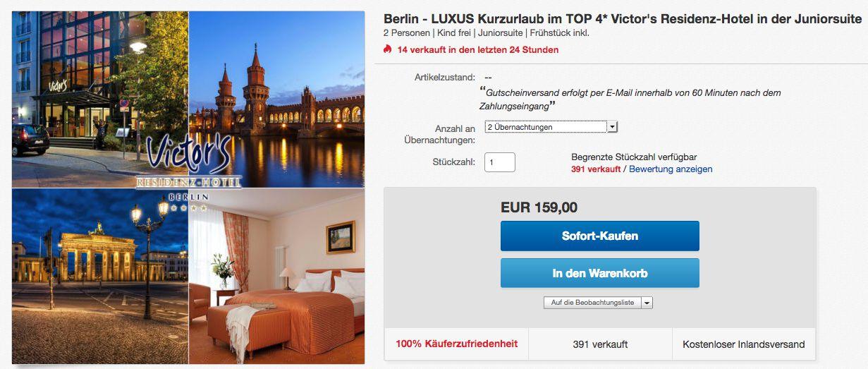 Bei eBay gibt es gerade einen richtig interessanten Hotelgutschein für einen Kurztrip in die Hauptstadt: