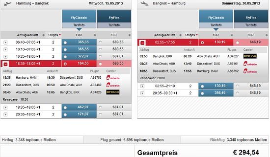 Zu finden sind die Preise direkt auf der airberlin-Homepage – ausschließlich mit dem Abflughafen Hamburg.